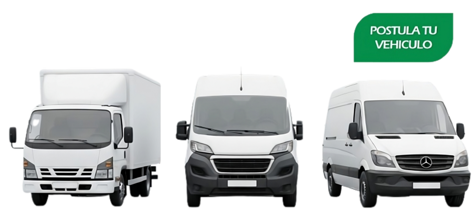 - El vehículo debe ser Camioneta (con furgón) , Furgoneta Van de Carga o Camión (desde 2,5 a 12 Toneladas)